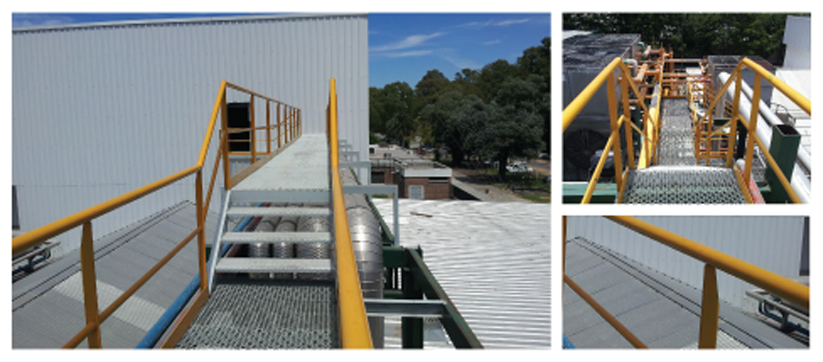 Construcción y montaje de Estructura de pasarelas desde Sector caldera PB hasta entrada lateral a nuevo edificio por cielorraso técnico de planta productiva.